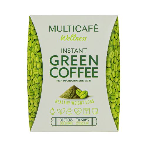 مولتی کافه تندرستی یک نوشیدنی سبز فوری 100% خالص است که به شما کمک می کند تا به تندرستی، سلامتی و تناسب اندام دست یابید. این قهوه سبز حاوی اسید کلروژنیک است که میتواند متابولیسم را افزایش دهد، وزن و چربی را به طور طبیعی و سالم کاهش دهد. دانه قهوه سبز هنوز برشته نشده است و از این رو دارای مزایای بیشماری برای سلامتی است. این محصول با تکنولوژی انحصاری تولید شده و به شکل پودر فوری درآمده است که با اضافه کردن آب جوش آماده می شود.