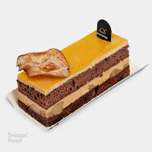 کیک لایه ای شکلاتی، موس شکلاتی و گلابی کارملایز شده، ۱۲۰ گرم